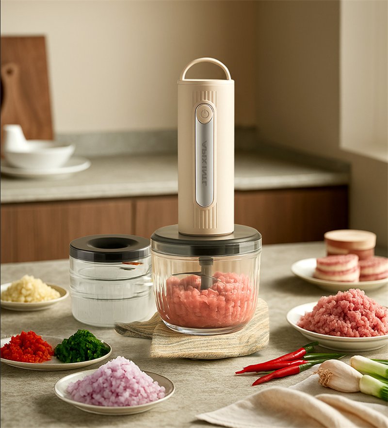 APIXINTL安本素电动迷你绞肉机家用辅食机多功能碎肉切菜料理机套娃收纳佐料机可剥蒜