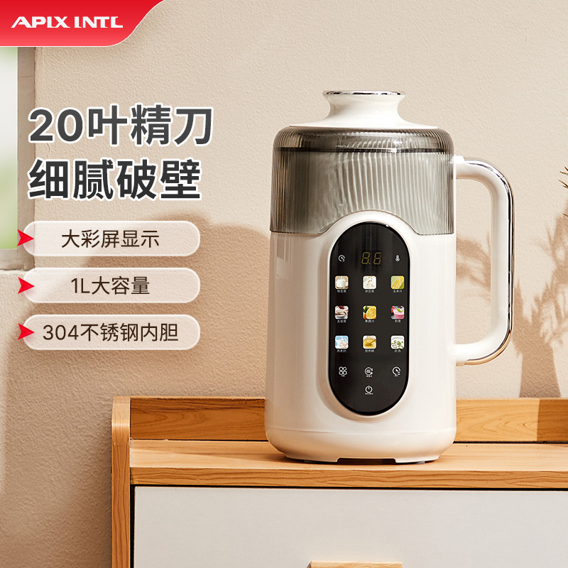 APIXINTL安本素 低音降噪破壁机 1L大容量家用多功能豆浆机料理机辅食机