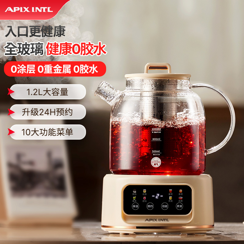 APIXINTL安本素玻璃电水壶热水壶大容量家用迷你养生壶 煮茶器 烧水壶办公室多功能全自动花茶壶