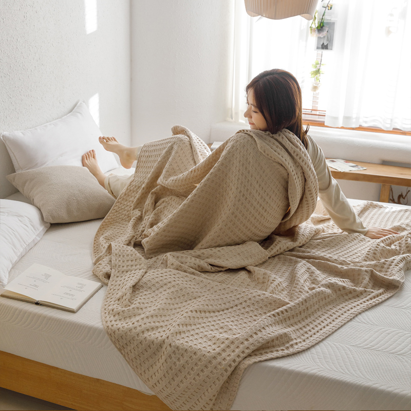 浪莎全棉纱布毛巾被-华夫格驼