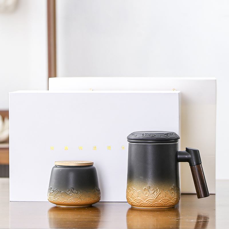 粗陶陶瓷马克杯办公杯 茶叶罐套装