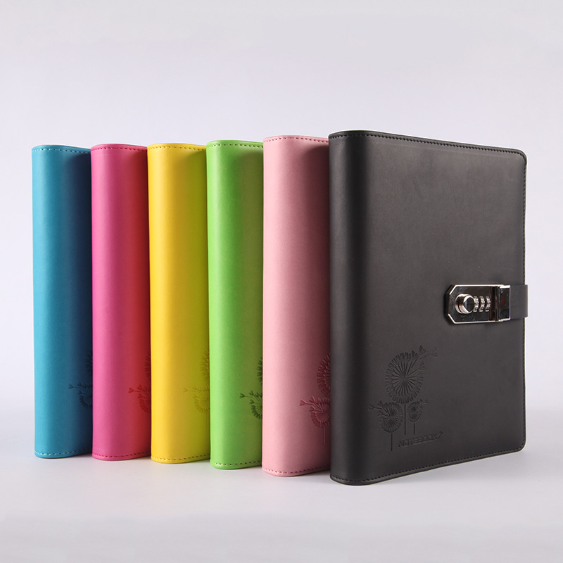 简约笔记本密码本创意办公记事本学生PU文具手账本a5活页本
