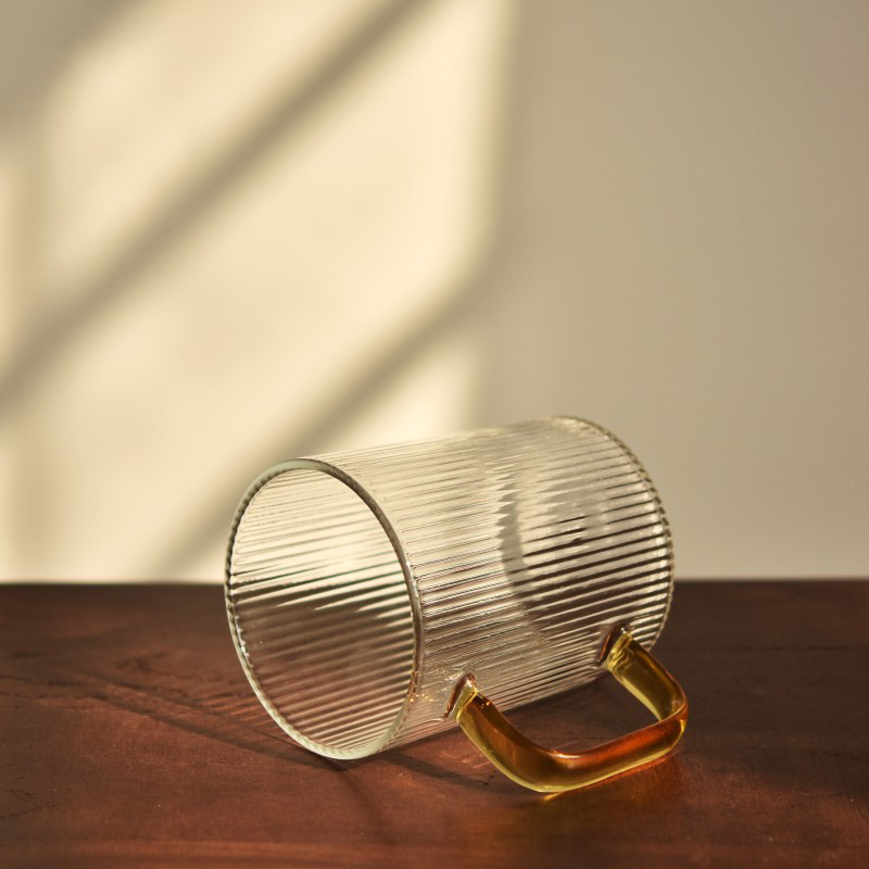 日式带把手玻璃水杯高颜值创意竖纹玻璃早餐杯简约牛奶果汁啤酒杯