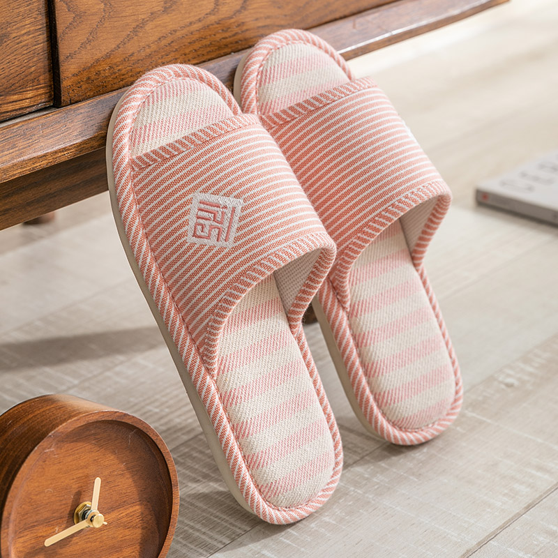 宅小年细条福字款亚麻拖鞋家居鞋颜色随机