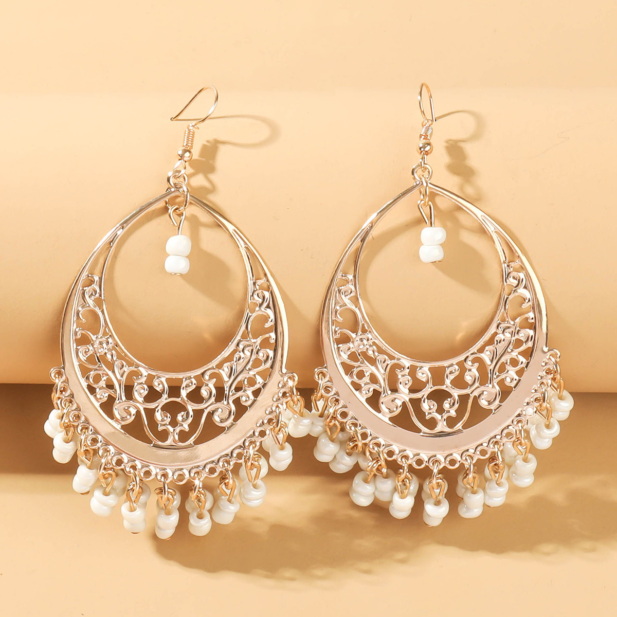 【气质个性】波西米亚耳环拼接圆圈磨砂撞色耳钉气质个性米珠流苏潮流女士耳环