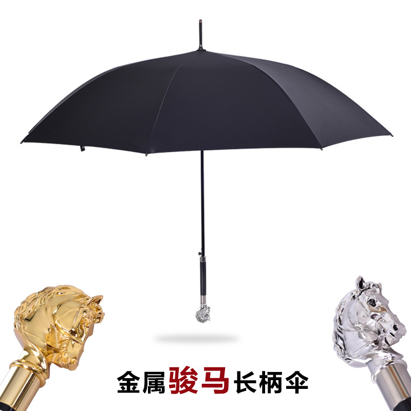 金属马头伞长柄动物头老虎头黑胶晴雨伞创意动物头造型礼品商务伞