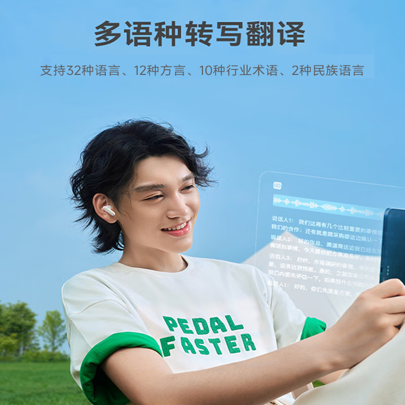 科大讯飞(iFLYTEK)录音降噪会议耳机Nano 皓月白 无线蓝牙耳机 主动降噪 同传听译 录音转文字翻译苹果华为通用