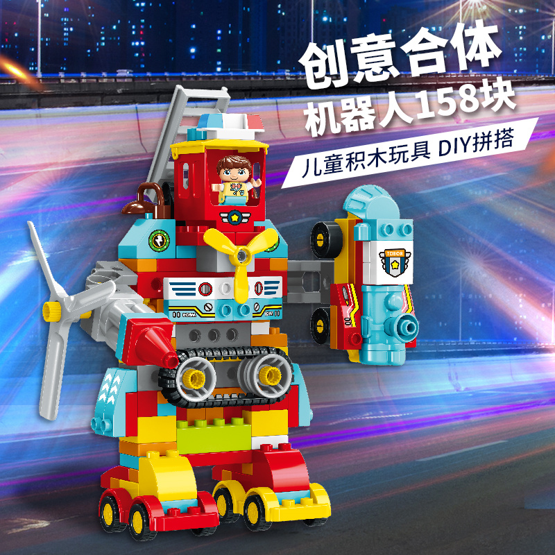 婴侍卫创意合体机器人儿童大颗粒积木拼装玩具