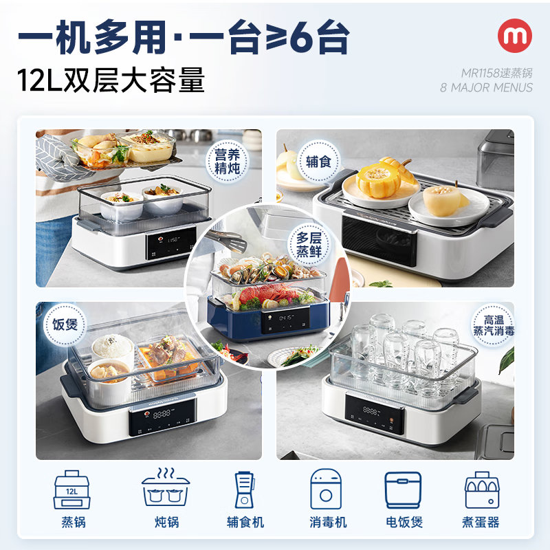 摩飞电器(Morphyrichards)多功能电蒸锅家用速蒸锅大容量可视多层蒸汽锅炖蒸煮一体自动断电蒸笼不锈钢蒸格智能电蒸箱