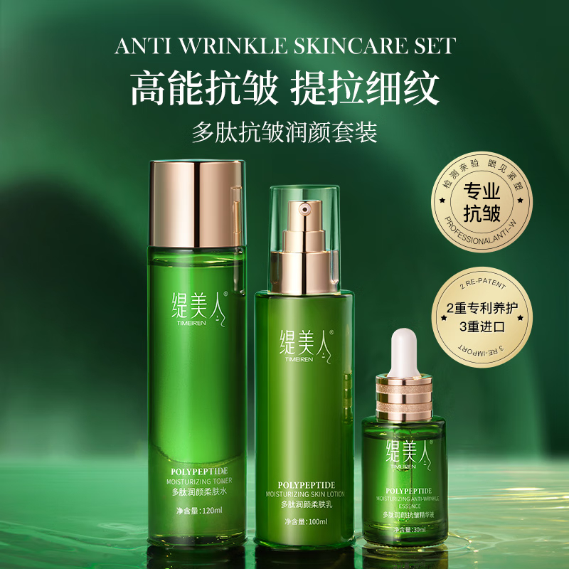缇美人多肽抗皱水乳护肤品套装 三件套化妆品补水紧致滋润护肤品套装 多肽抗皱润颜套装