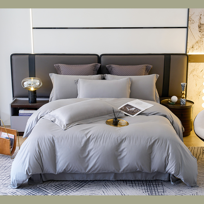 小绵羊60S贡缎全棉四件套新疆长绒棉床单被罩被套月光宝盒长绒棉四件套 远山灰 200*230cm