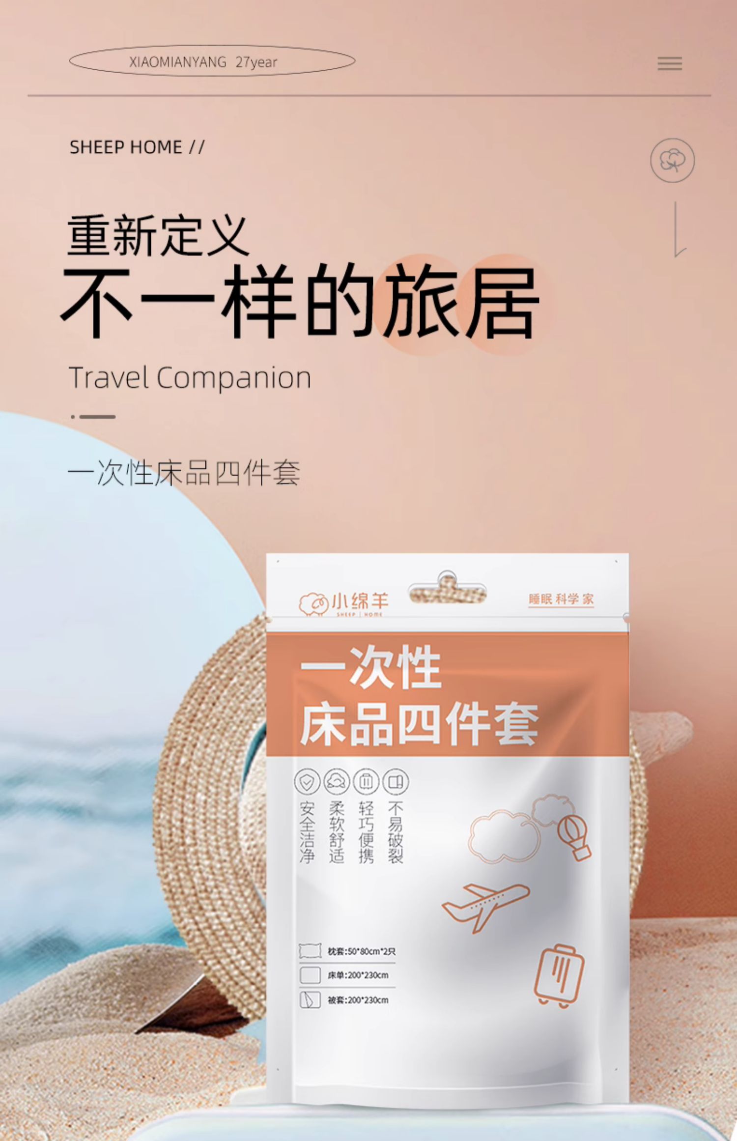 小绵羊柔绵一次性旅行床品四件套出差旅游酒店宾馆无纺布三件套
