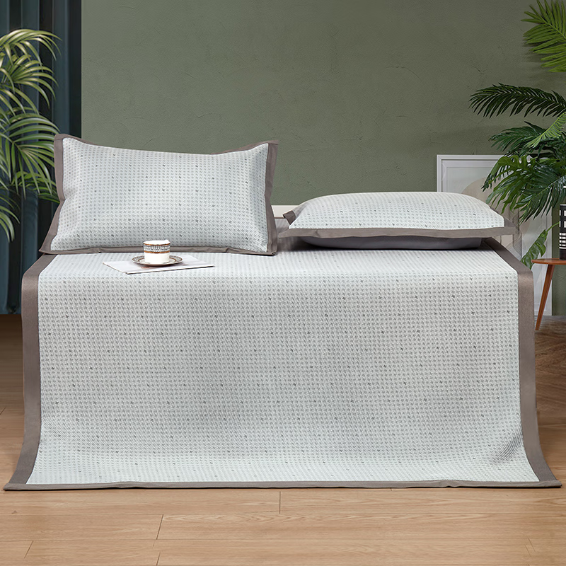 小绵羊礼品送礼夏季凉感冰丝席双人三件套可水洗柔软冰丝席子 灰绿 150*200cm(三件套)