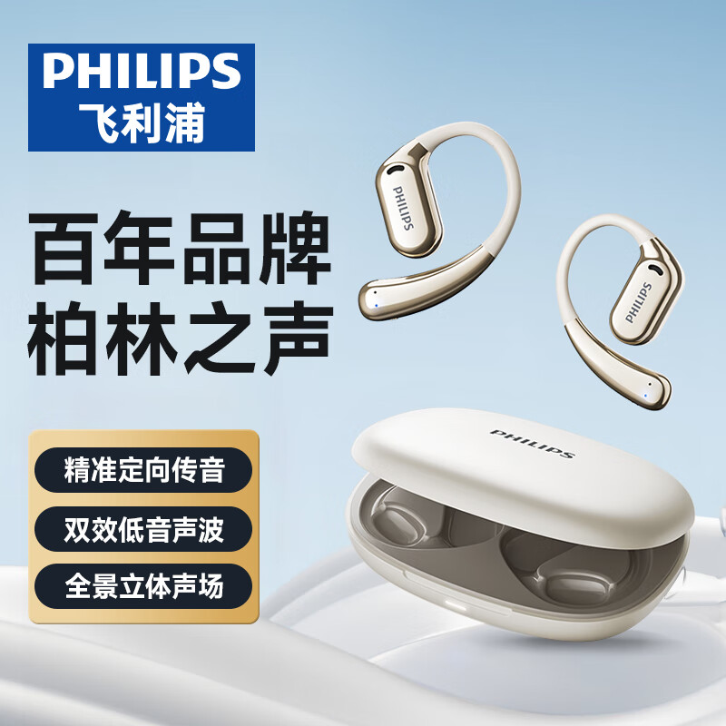 飞利浦 开放式蓝牙耳机TAT5739 米白色 黑色
