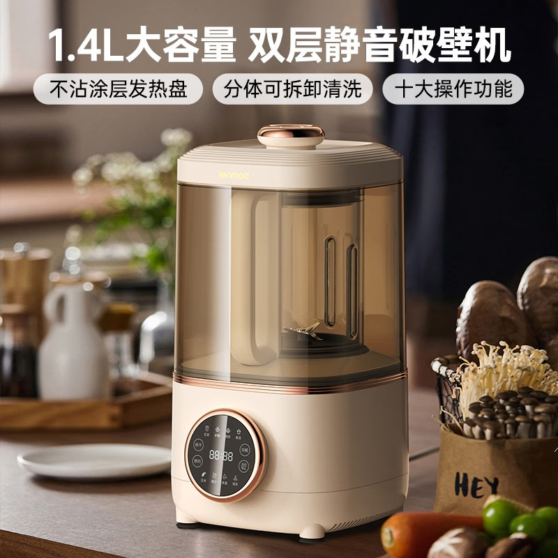邻鹿 破壁机家用低噪静轻音加热低声音料理机全自动婴儿辅食榨汁机豆浆机搅拌机 多功能静音LR-026