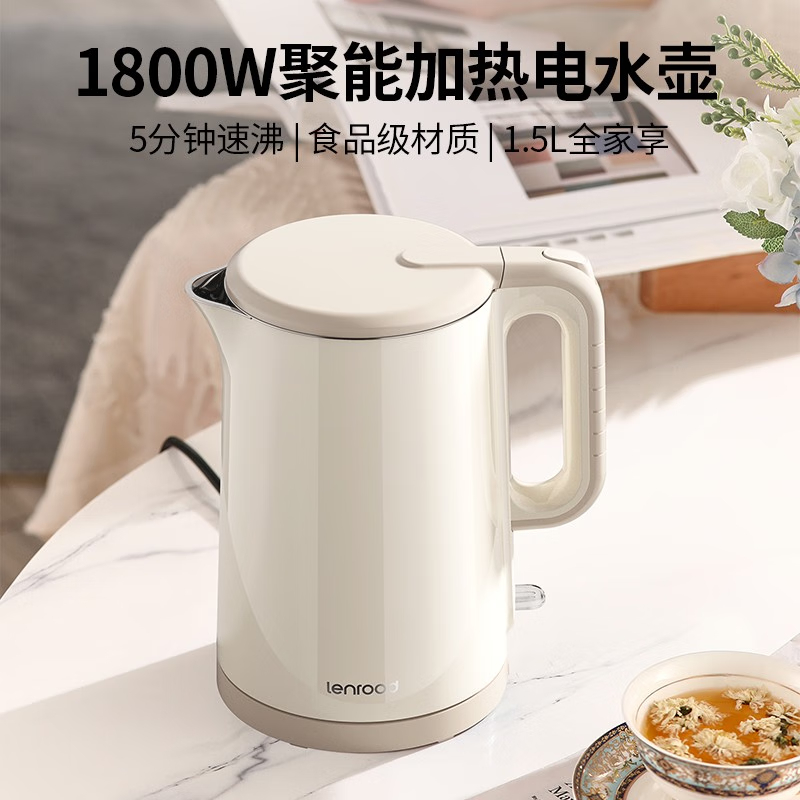 邻鹿双层包胶防烫 电热水壶 (1.5升)