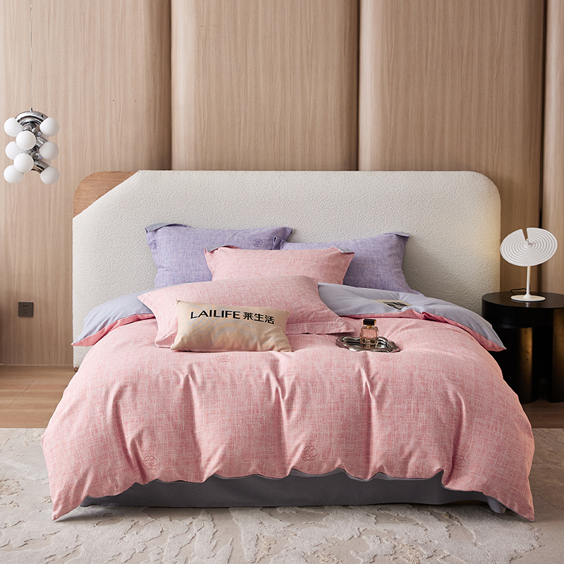 莱生活全棉贡缎四件套梦幻如烟-粉