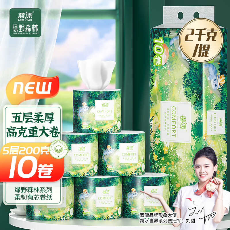 蓝漂绿野森林柔韧卫生纸白色圆卷10卷